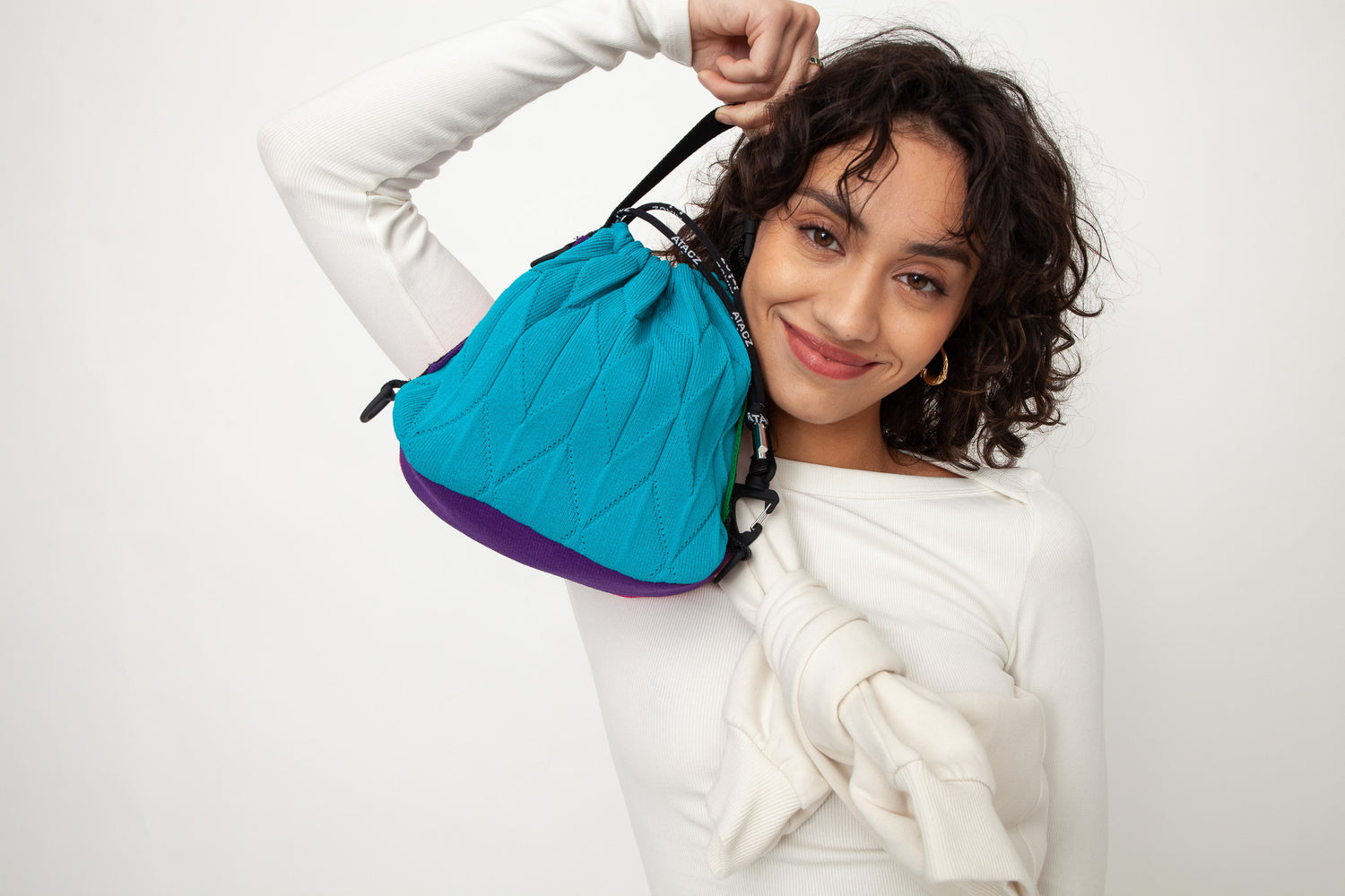 Atacz unique Voyage Tote Bag, which comes in some striking color schemes with a ribbed texture that helps it stay flexible and spacious. The strap is adjustable, making it extra versatile for wherever you may need it, and it's also lightweight, so it can keep up with you at every point of the journey.