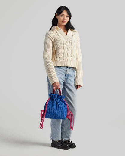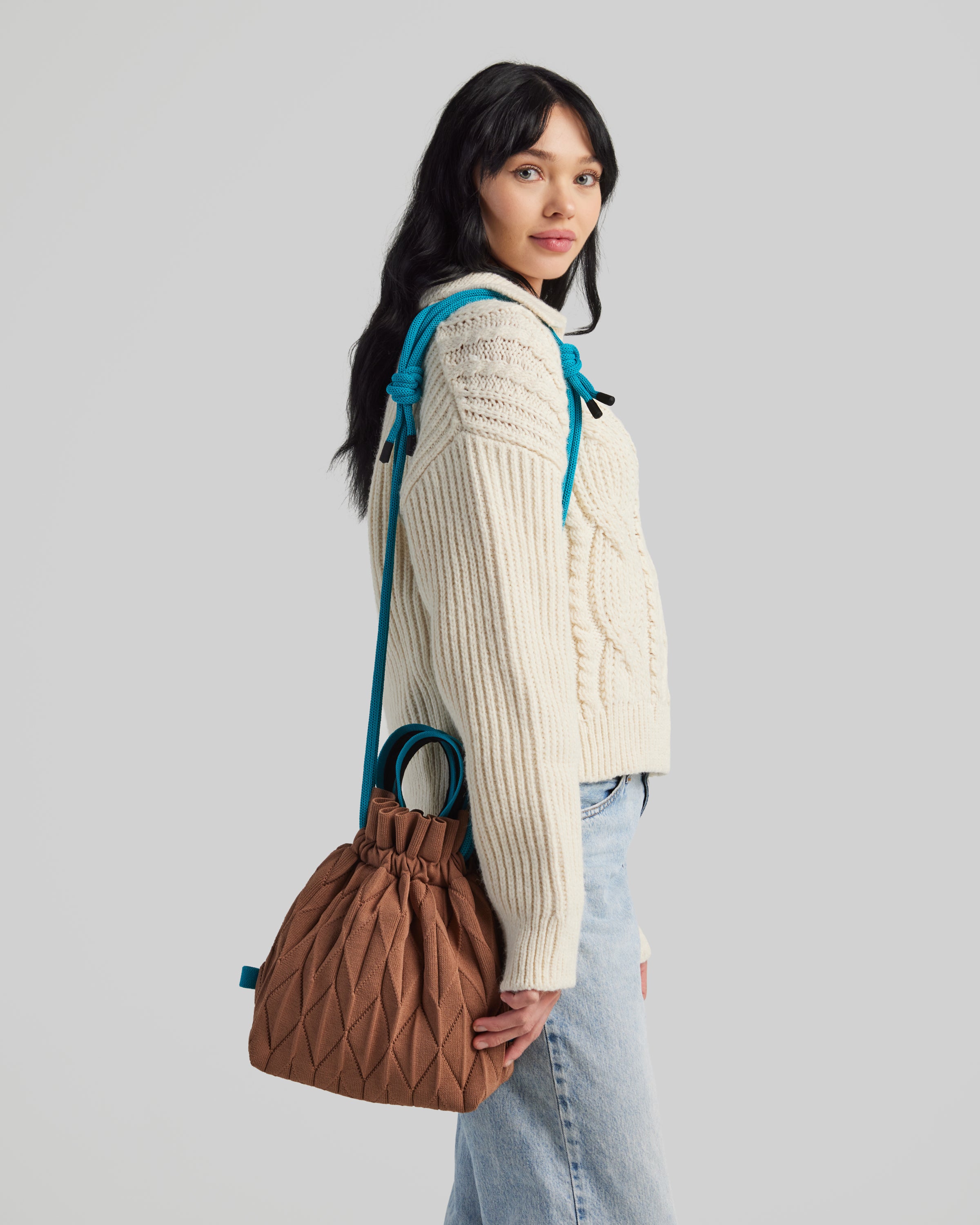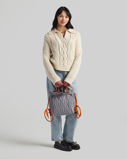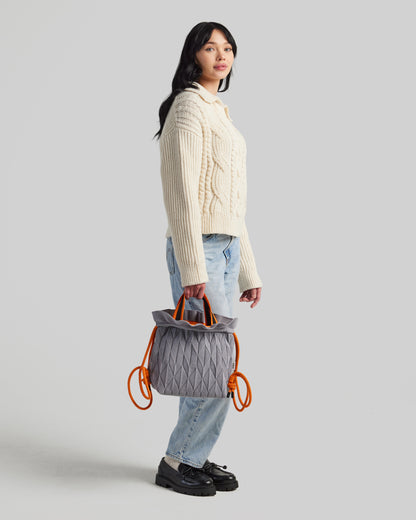 Meet the Twist Knotpack — the newest evolution of our Twist line. Designed for days when you need extra room, it offers more storage than the Mega Twist while keeping the same lightweight, effortless feel. Dual handles and a secure drawstring closure add everyday practicality, and a built-in bottom liner provides added structure and support for heavier items.